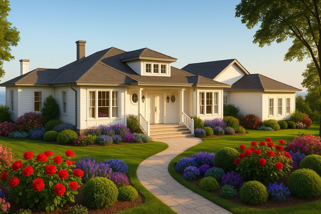 Exterior Features: Deck/porch on front and rear, courtyard, side entry garage, outdoor kitchen