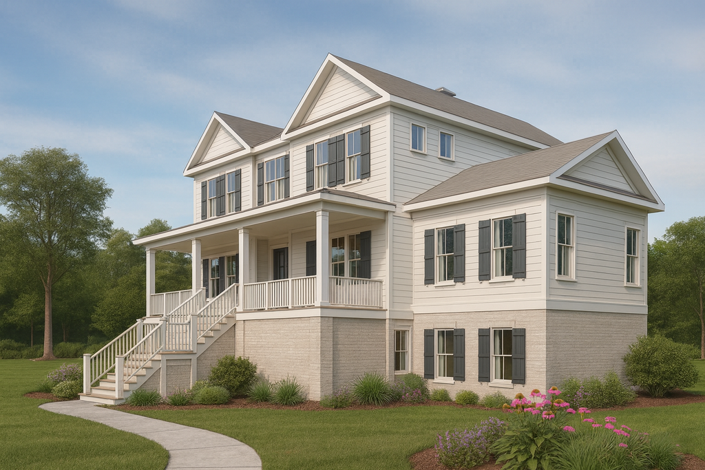 Exterior Features: Drive under - left side garage, Front & rear porches