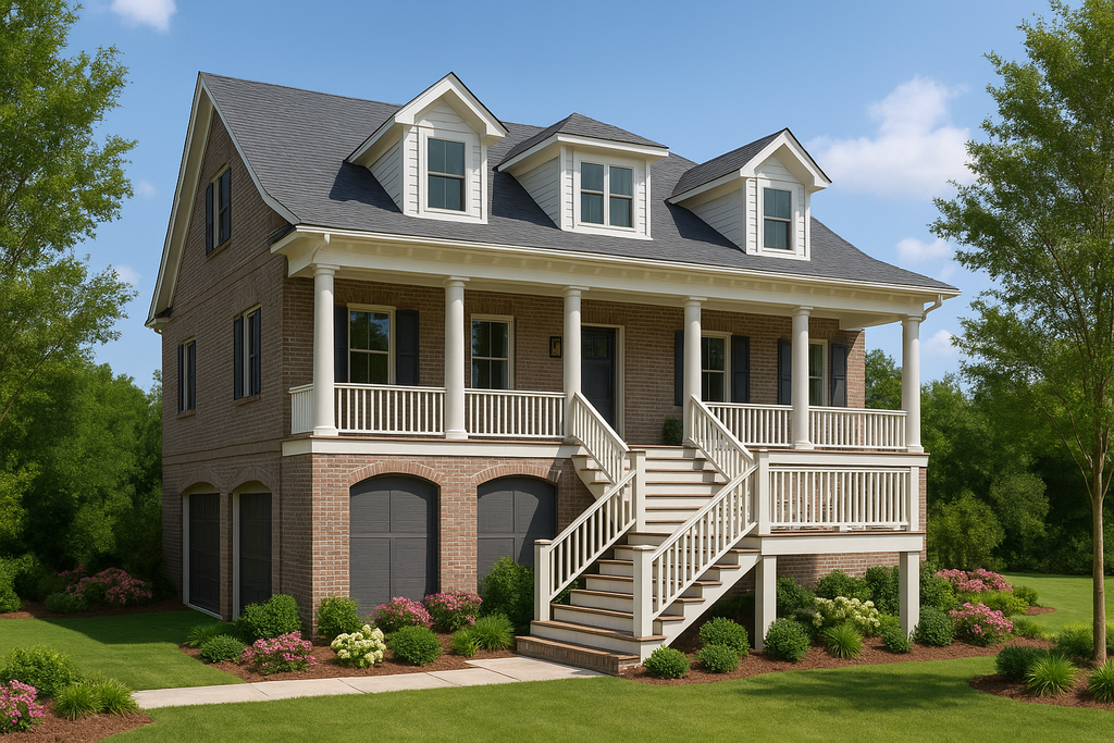 Exterior Features: Drive under foundation, side entry garage, large front porch