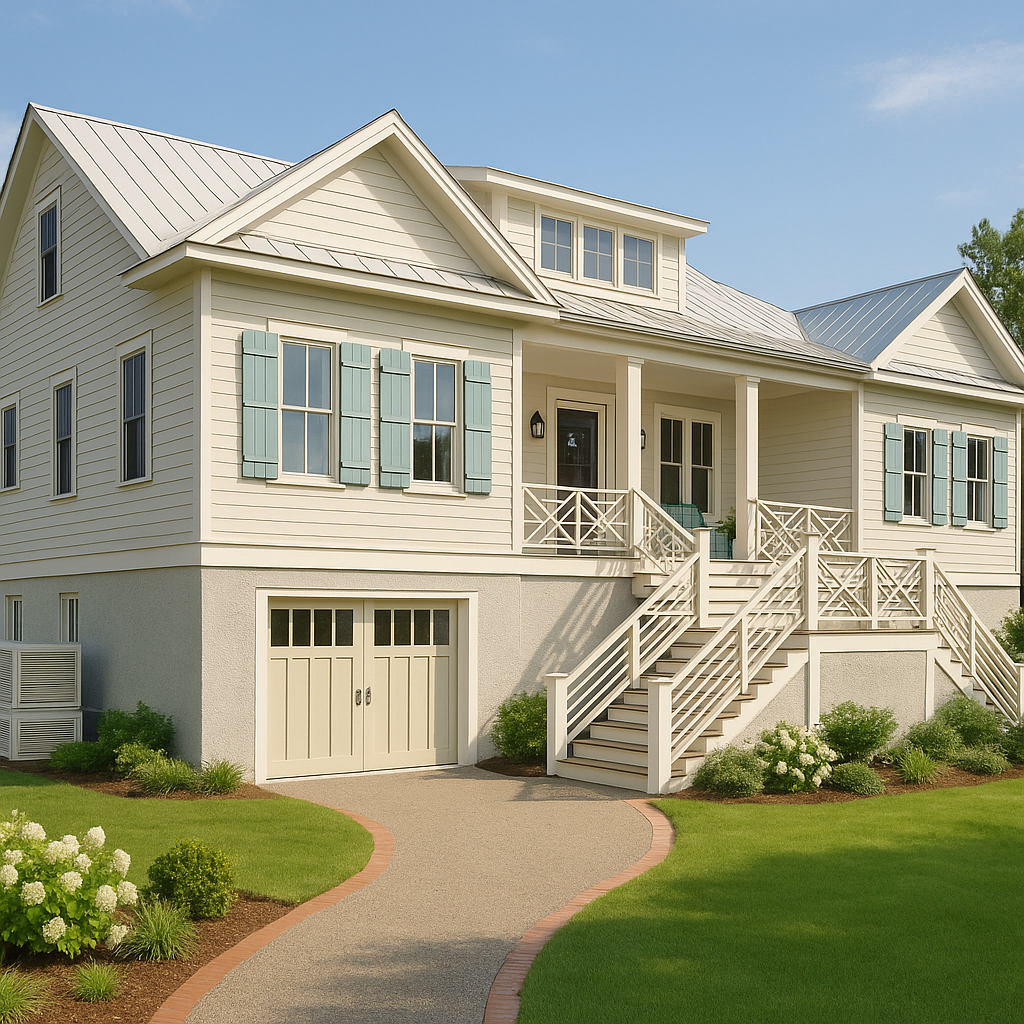 Exterior Features: Drive under foundation, front entry garage, screened porch, grilling deck