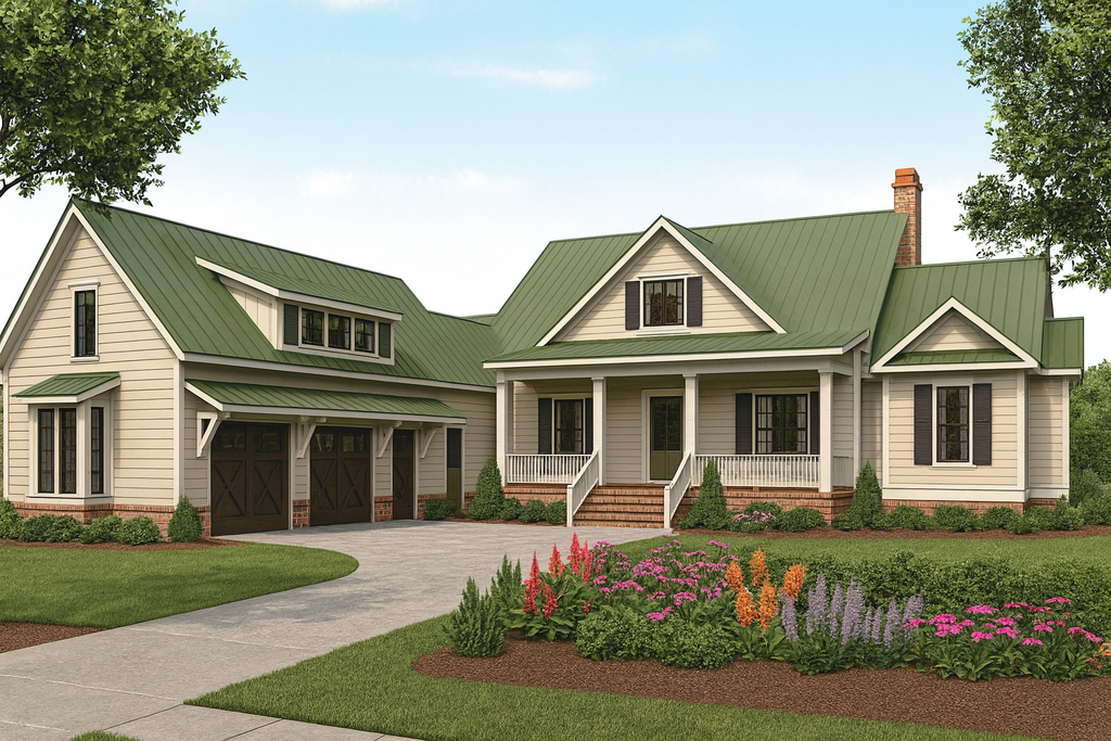 Exterior Features: 2.5 Car courtyard entry garage, Front porch, Large rear covered porch with fireplace